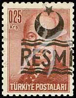 Sc#O24b 土耳其军事家、总统伊诺努加盖公事票0.25k (5-1) 1枚