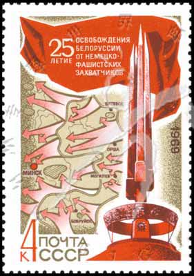 Sc#3613 白俄罗斯解放25周年,纪念碑和明斯克战役图4k 1全
