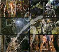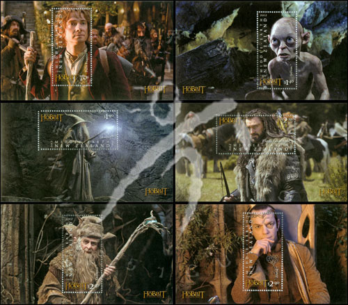 魔幻电影《霍比特人1:意外旅程》,电影角色魔戒持有者比尔博·巴金斯、怪物咕噜姆、巫师甘道夫及艾尔朗德6枚小型张
