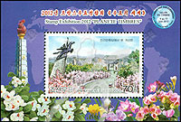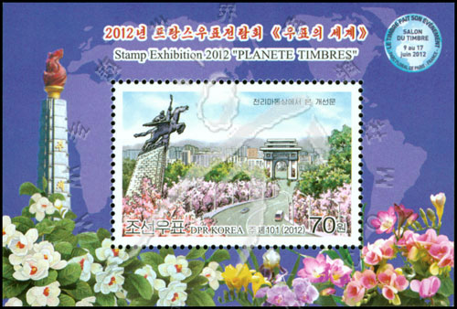 巴黎2012世界邮展,平壤凯旋门、千里马铜像及主体题思想塔小型张