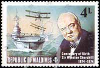 Sc#527 丘吉尔诞生百年,丘吉尔与航空母舰4l (8-4) 1枚