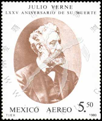Sc#C634 法国科幻小说家儒勒.凡尔纳逝世75年,肖像航空票5.50p 1全