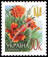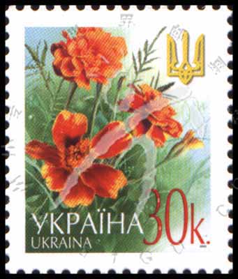 第六组普票,花卉—金盏花及乌克兰标志三叉戟1全