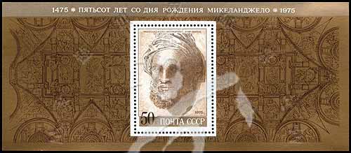Sc#4302 意雕刻家、画家米开朗基罗诞生500年,自画像小型张50k