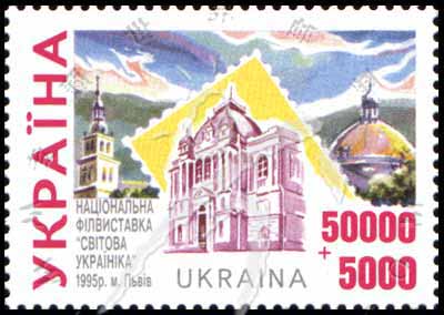 利沃夫第3届全国邮展,建筑等附捐票1全
