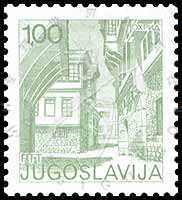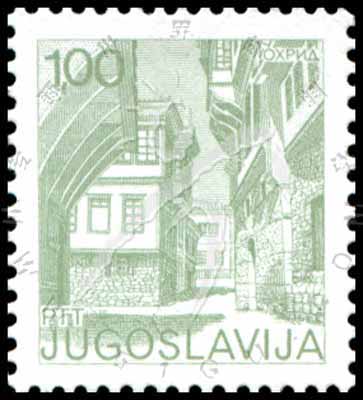 Sc#1246 旅游,奥赫里德国家博物馆及街道普票1d (9-4) 1枚