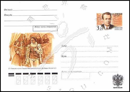 歌唱家S.Ya.Lemeshev(1902-77)诞生百年,肖像、布尔什剧院内部与演出场景纪念邮资封1F