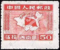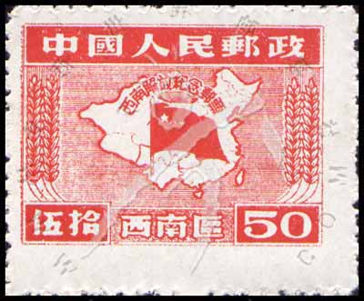 Sc#8L19 西南解放,中国地图与国旗$50 (4-3) 1枚