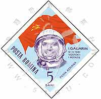 Sc#C151I 苏宇航员尤里.加加林及国旗无齿航空票5b (10-1) 1枚