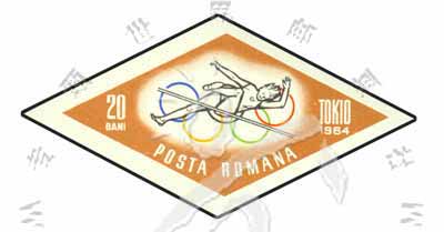 Sc#1665I 东京第18届奥运会,跳高无齿菱形票20b 1枚