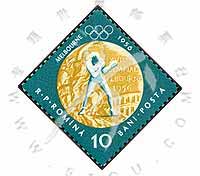邮票介绍:Sc#1452 罗56及60年奥运所获金牌,拳击菱形票10b (10-5) 1枚