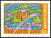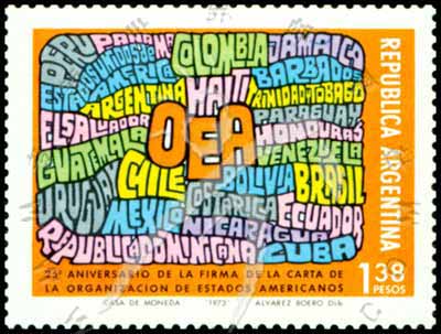 Sc#1020 美洲国家组织25周年,彩色国家名称13.8p 1全
