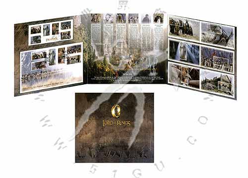 圣诞大片《指环王》II —《双塔奇兵》雕刻版封面,剧中主要人物介绍、武器等邮折(6枚小型张共6票、小全张共6票、小版张共6票)(已售缺)