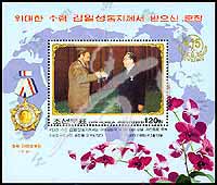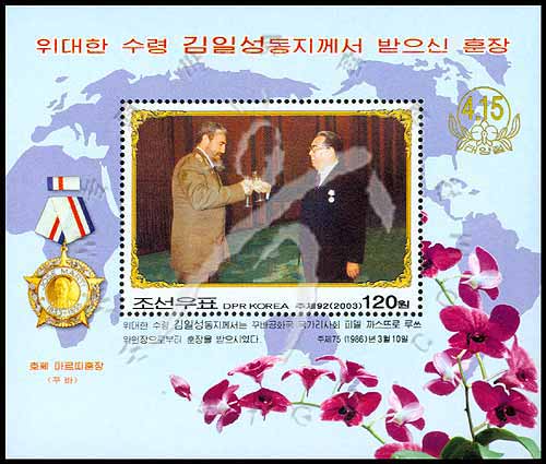 金日成主席奖章,金日成与古巴国家主席卡斯特罗干杯剧照小型张