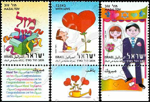 祝福邮票,婚礼、礼品及红心气球等带边纸3全(我社已售缺)