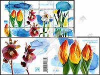 春季花卉,郁金香、菟葵、水仙和番红花小本票(带邮政号角,4票+相关介绍)