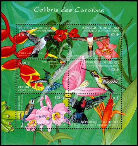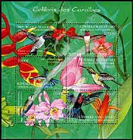 鸟类系列二,蜂雀及花卉小全张(6票)