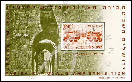Sc#375a TABIRA国家邮展,耶路撒冷狮子门无齿小型张£1.00