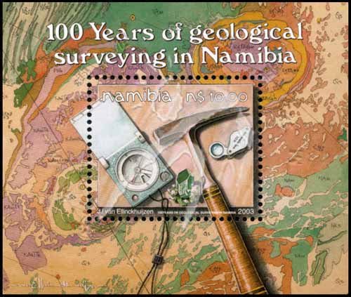 纳米比亚地质测量百年,地形图、地质锤、罗盘、放大镜及斧头等小型张