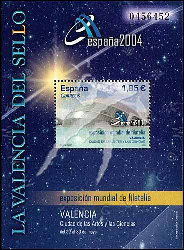 西班牙2004世界邮展,会徽、展览馆外景等小型张