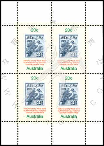 Sc#687a 邮票周,国家邮展50周年,No.95翠鸟票中票小全张(4票)