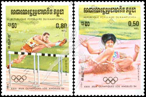 Sc#489-490 洛杉矶奥运会,跳远(50c)、跨栏(80c) 1枚