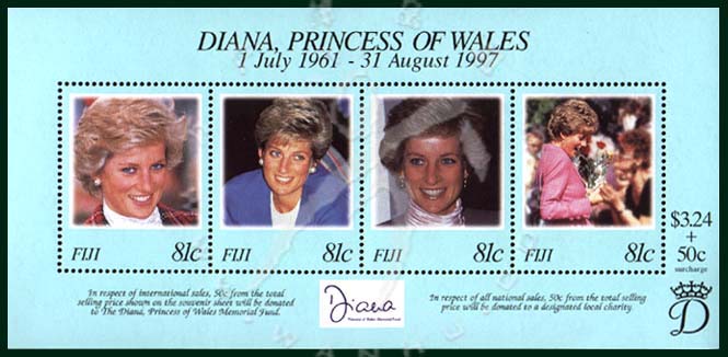 戴安娜王妃逝世1周年,戴妃参观英国伊普斯威奇市、萨默塞特郡、看望帕金森病友及老人之家等照片小全张(4票)