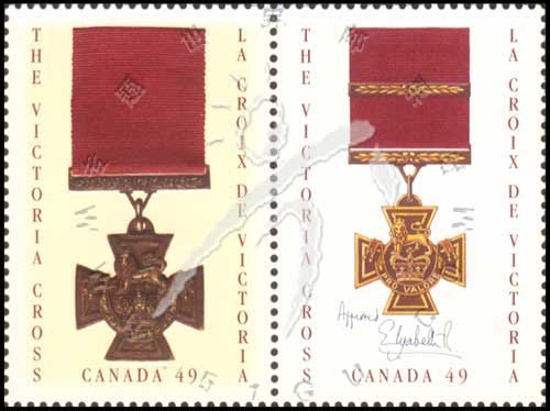 维多利亚十字勋章,英国维多利亚十字勋章(凹凸压印)、伊丽莎白二世御准的加拿大维多利亚十字勋章图样及其签名2联