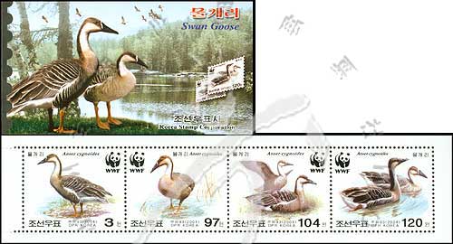 鸿雁及WWF世界野生动物基金会徽志小本票(4票)