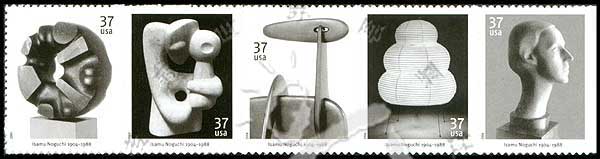 日裔美籍雕刻家野口勇诞生百年,作品《忧郁的太阳》、《母与子》及《轮廓》等不干胶自贴票5联