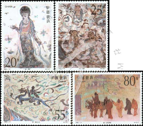 (92-11)敦煌壁画(四)1枚(4种面值)