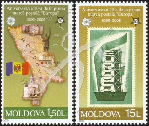 欧罗巴邮票发行50周年,早期欧罗巴票、地图、雕塑及建筑2全(含高面值票)