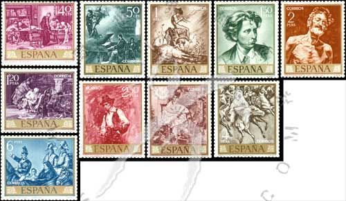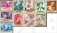 邮票日,版画家福图尼(1838-1874)的绘画:《教区办公室》、《浮士德的幻想》、《田园生活—吹笛子的牧童》及《拿扇子的女人》等10全