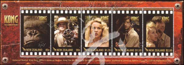 新版科幻电影《金刚》,猿人巨兽金刚、1933年黑白片的导演兼制片人卡尔·德那姆及新片中的男女主角小全张(5票)