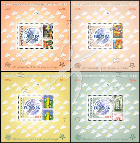 欧罗巴邮票发行50周年,艺术设计及早期发行的欧罗巴邮票图案4枚小型张