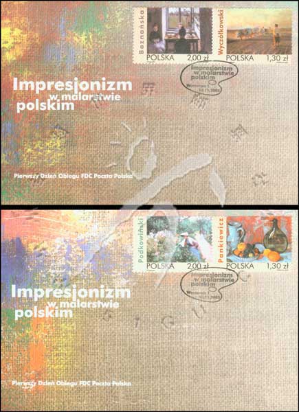 波兰的印象派绘画,《树旁的花园》、《卖花人》、《乌克兰人在犁地》及《水果静物》2联邮票首日封2全