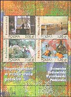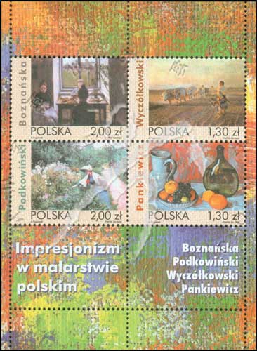 波兰的印象派绘画,《树旁的花园》、《卖花人》、《乌克兰人在犁地》及《水果静物》小全张(4票)