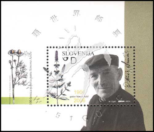西蒙神父诞生百年,肖像及药用植物洋甘菊D类邮资小型张