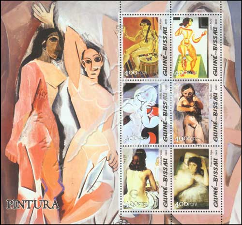 西班牙绘画,著名画家米罗、毕加索及戈雅的女性裸体画小全张(6票)