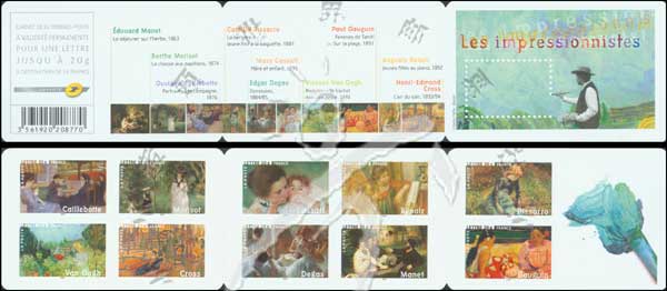 经典画作,画家卡勒波特、摩里逤特、卡莎特、雷诺瓦、毕莎罗、梵高、德加、马奈及高更画作不干胶自贴小本票(10票)