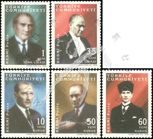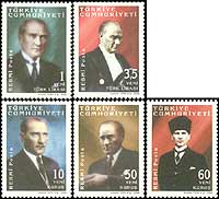 官方邮票,土耳其国父穆斯塔法·凯末尔·阿塔土克肖像5全