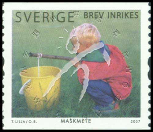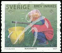 夏日垂钓,钓鱼的儿童1全(上下边无齿孔,左右两边为异形齿孔)