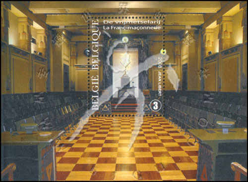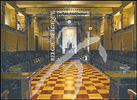 比利时共济会康斯坦斯会所建立200周年,会所内部装饰及桌椅小型张