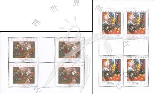 方寸艺术,画家雅库布·博格丹的绘画《斗鸡》及朱利加斯·雅各比的绘画《堂吉诃德》雕刻版2枚小版张(各4票)