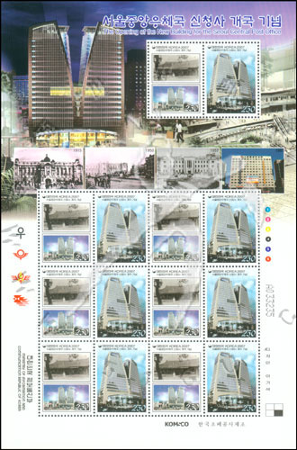首尔中央邮局启用,1915年的邮局原貌及现邮局大楼小版张(7套共14票)