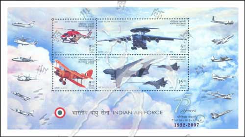 印度空军成立75周年,早期及当代的军用飞机小全张(4票)