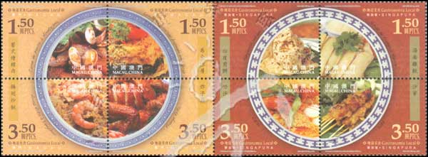 地道美食,印度煎饼、海南鸡饭、叻沙、沙爹、葡式烩猪肉、马介休层、扬州炒饭及炸子鸡8联(与新加坡联合发行)