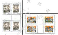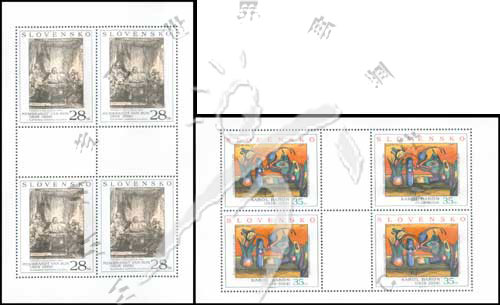 方寸艺术,荷兰画家伦勃朗的绘画《以马斯的晚餐》及画家卡罗尔·拜伦的静物画雕刻版2枚小版张(各4票)