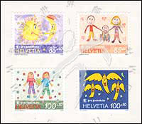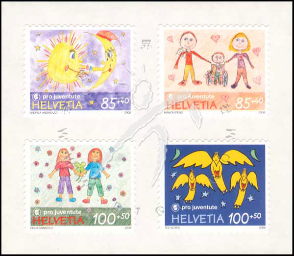 青少年附捐票—友谊,绘画《天使的友谊》、儿童画《友谊的结合》、《友谊提供支援》及《友谊是快乐的根源》不干胶自贴票4全