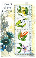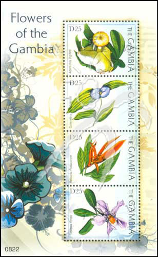 花卉,猴面包树花、竹叶菜花、金鸟鹤蕉及红花风铃木花小全张(4票)
